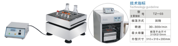本产品体积小重量轻,摇床转动部分与电器控制部分分开放置,方便用户在二氧化碳培养箱内使用,提高了使用过程中的安全性。