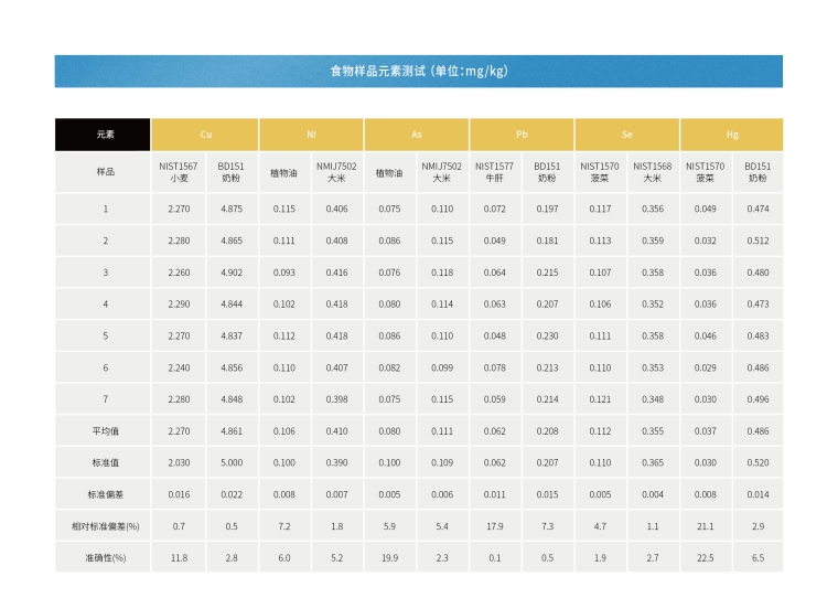 产品说明·只需研磨粉碎,无需高温强酸消解; 适用浓度范围宽,从20μg/kg至100%均适用;