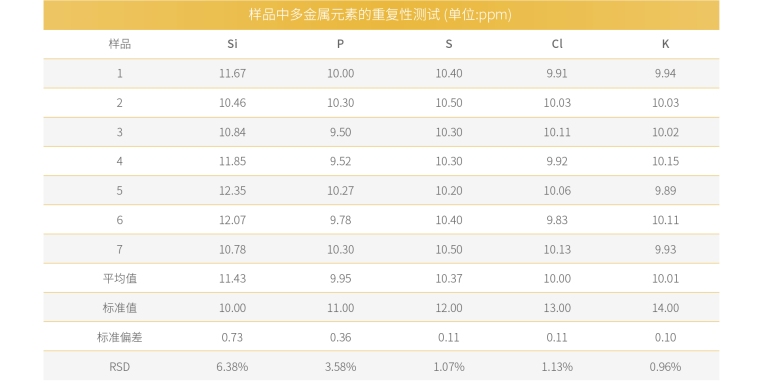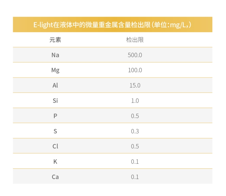 产品特点·基于HDXRF技术,E-light可以快速准确定量分析液体、粉末等样品中的钠、镁、铝、硅、磷、硫、氯等轻元素,在轻基体下检出限可以低至ppm级别;针对食品中铝、磷、钾以及工业应用中轻元素有出色的分析性能;