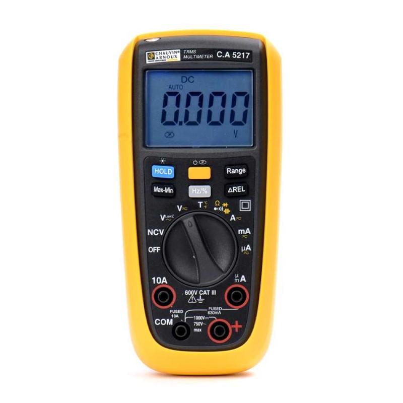 CA5215 4000-计数数字万用表是一类精确的真有效值(TRMS)万用表,可用于日常的各种电气设施的维护。该类型万用表具有标准万用表所有的功能,包括:电压(Vac,Vdc)、电流(Aac,Adc)、电阻(Ω)、电容(mF)的测量,通断性测试和二极管测试。