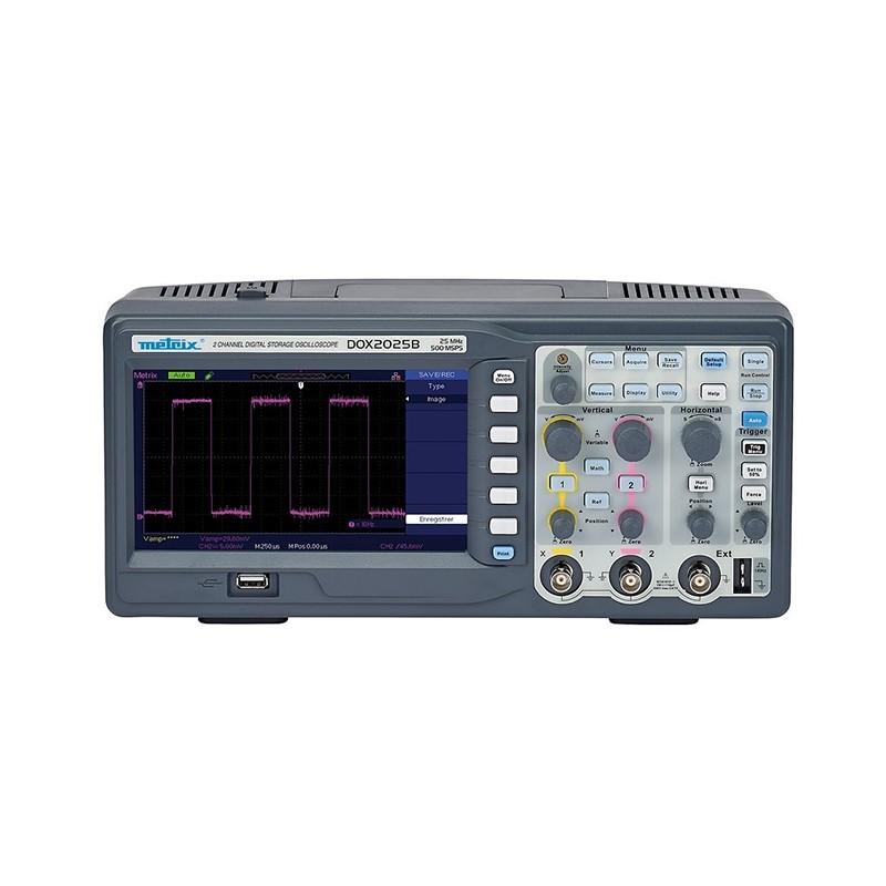 METRIX®DOX2000系列示波器特别紧凑和简单易用,特别设计供实验室使用。 设备配备了一个可以显示18 div的全屏模式。这可以使用户定制显示内容:选择正常或持续显示,YT或XY格式,调整颜色,大小,亮度,对比度等等。旋转按钮和背光键给前面板增色不少。 示波器配备把手,使它可以方便携带;防滑四脚可以使设备在户外使用更稳定。 高性能和多种功能用于数据的采集和分析。 存储深度32 k或2 M优化分析。垂直灵敏度从2mV/div到10 V/div。水平灵敏度2.5 ns到50s/ div。高级功能:简单的数学函数(+ / - / x /÷)和“实时”FFT与同步显示的波形。 附带EASYSCOPE软件,使您能够更加方便的管理您的数据和图形。