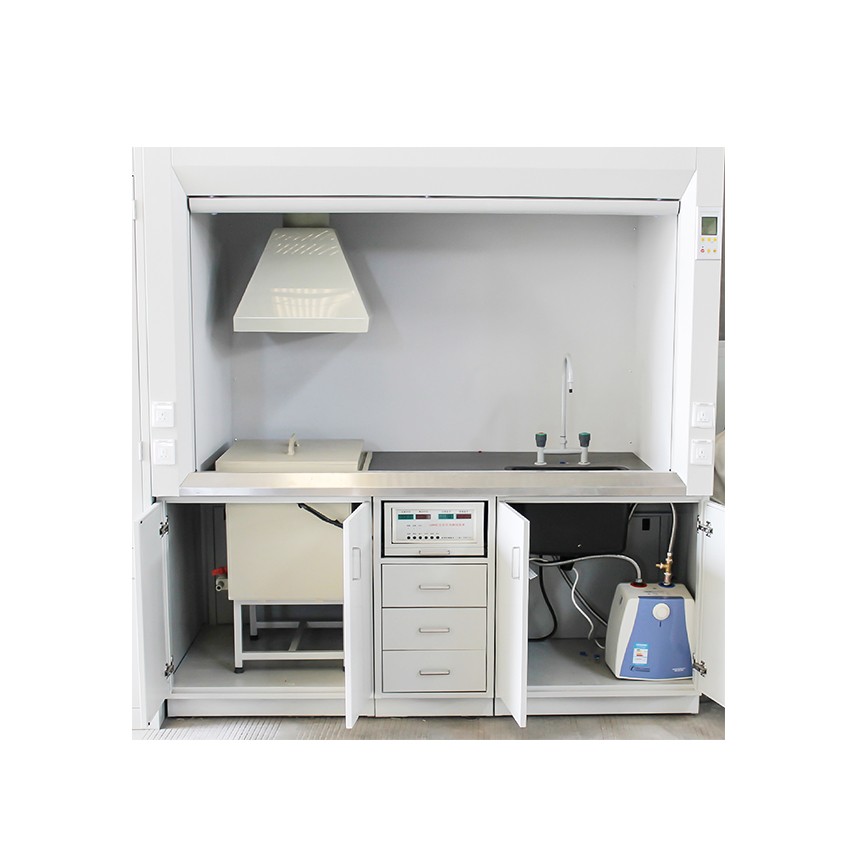 低倍酸蚀装置内置于排风柜组内,组成一体。