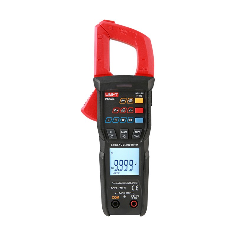 UT202S/UT202BT是一款性能稳定、结构新颖、高可靠性、高安全性的手持式真有效值数字钳形表。全功能自动量程,9999Counts的显示位数,性能优越。 UT202S可自动识别测量交/直流电压、交流电流、电阻和电路通断;并可通过按键选择,测量电容,二极管、直流微安电流、火线零线检测(LIVE)、温度和非接触式交流电压感测(NCV)。 UT202BT可测量交/直流电压、交流电流、低通滤波电压/电流、浪涌电流、峰值电压/电流、电阻、电路通断、电容、温度和非接触式交流电压感测(NCV)。同时具有蓝牙功能,可以连接手机APP,实现远程数据观测及仪表控制,是广大用户理想的检修仪表。