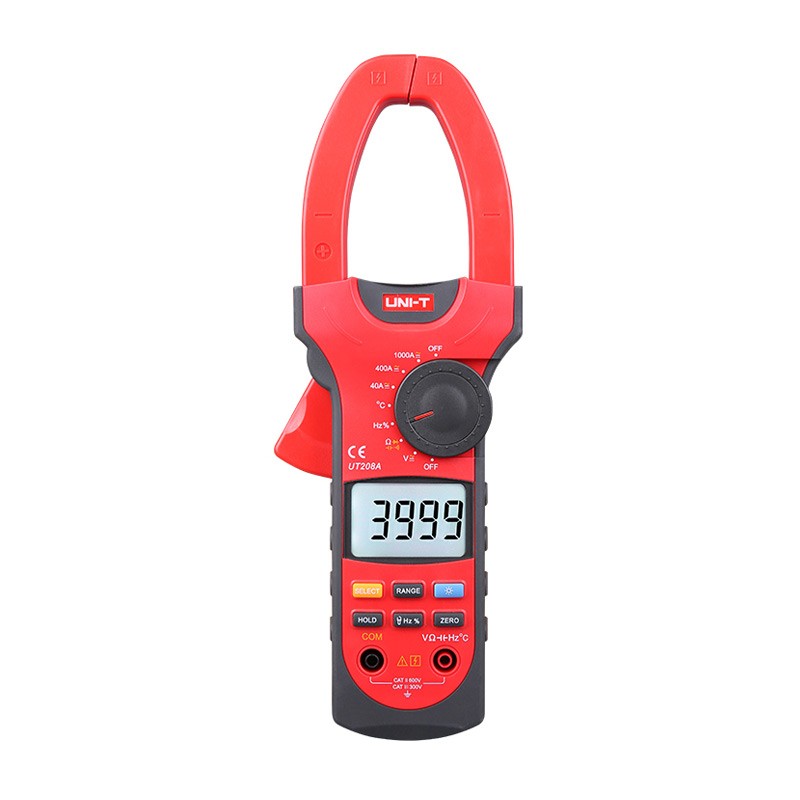 UT208A是一款1000A交流/直流电流和电压测量,55mm钳口尺寸钳形表,可以轻松应对大电流/高压场合较大导线的测量要求。具有真有效值测量,可以准确的测量非线性负载电路。在电力行业、机械设备维修和保养、电路检测等领域都将发挥上述特点。