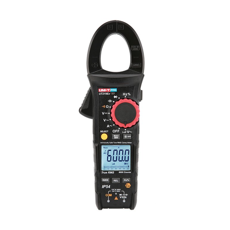UT219Ex | 本安型工业防爆钳形表 | 6000/真有效值 | 交/直流电压:1000V/1000V | 交流电流600A | 电阻: 60MΩ | 防爆等级:Ex ic IIC T4 Gc、 Ex ic IIIC T130℃ Dc |