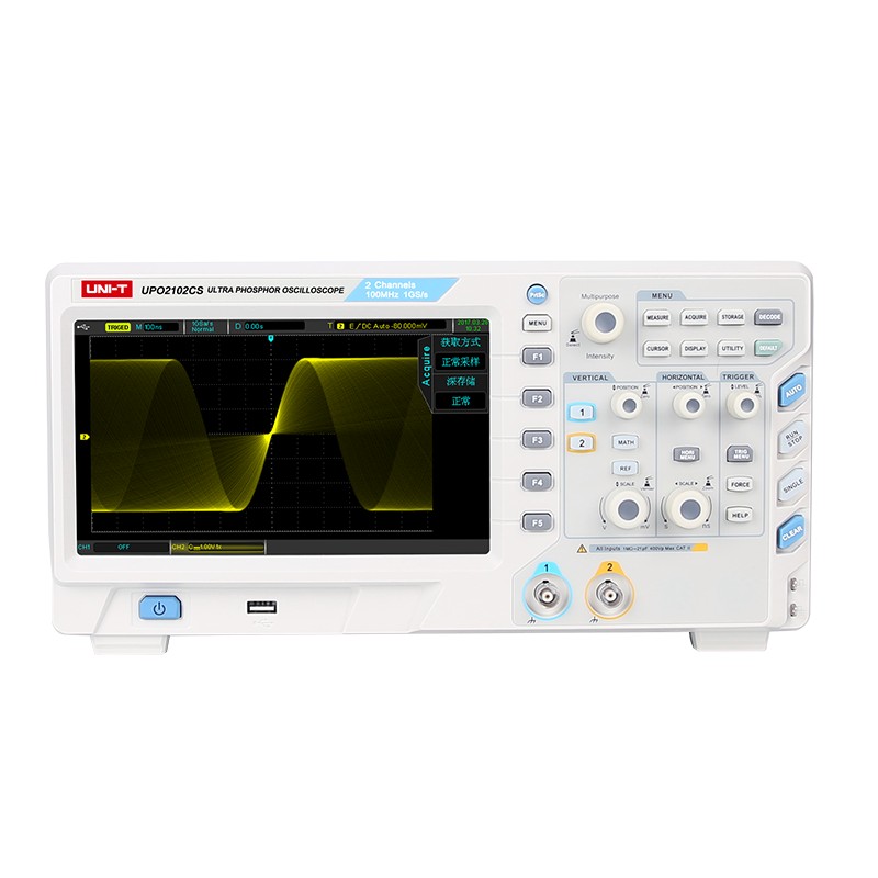 UPO2000CS系列具有2/4个模拟通道,100MHz带宽,1GS/s采样率的经济型通用数字荧光示波器。存储深度高达56Mpts。 波形捕获率达83,000wfms/s,四个通道时基独立可调,丰富的高级触发及总线解码功能(选配),以及丰富的外围接口,超高的性价比优势。