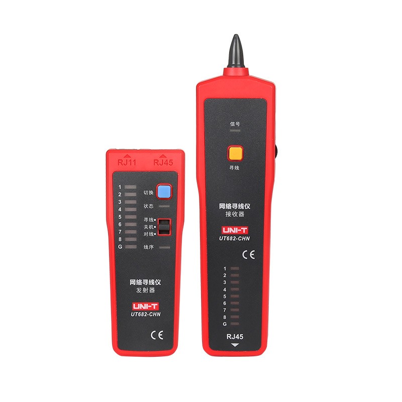UT682-CHN是一款网络寻线仪,由发射器和接收器两部分组成。它包括电话线路寻线、网络线路寻线、电力电缆线路寻线和网络线路校对等功能,具有快捷和准确测试的特点,是通信线路,综合布线线路等弱电系统安装、维护工程人员的理想工具