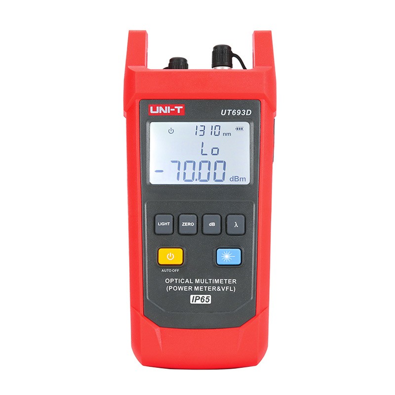 UT693D手持式光一体机主要用于连续光信号功率的测量,采用低功耗单片微处理器进行控制,功能齐全,搭配10mw红光笔。机身造型设计符合人体工程学要求,采用先进冷塑模工艺,美观耐用。产品采用内藏式探测器,可使其受到良好保护。另外,它还具有IP65防水防尘、背光显示、自动关机功能、波长记忆功能、用户校准功能及超宽光功率的测试范围。广泛用于光缆施工与维护、光纤通信、光纤传感、光CATV等领域。