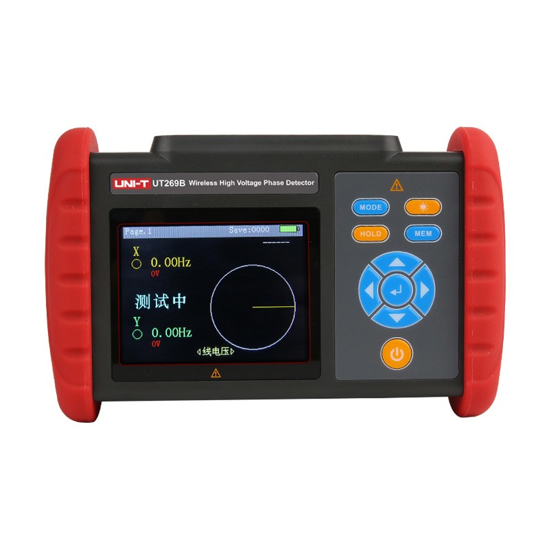 UT269B无线高压核相仪应用于电力线路或变电所验电、核相、相位测试、相序判断、变压器组别判断等(线路电压:70V~550kV)。核相仪采用无线传输技术,传输距离可达30米;3.5寸LCD彩屏,可同屏显示相位、频率、电压等核相结果,动态向量图指示,清晰直观;具有“X信号正常、Y信号正常、同相、异相”等语音提示功能,使测量更加简单轻松。