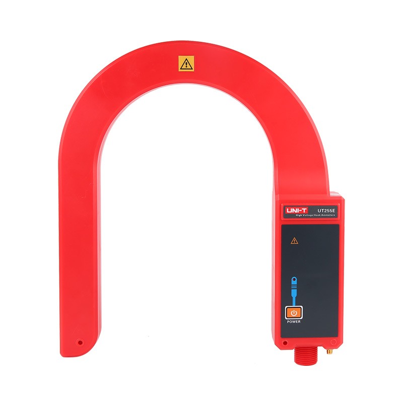 UT255E无线高低压钩式电流表由超大口径的钩式检测仪、无线接收器、伸缩绝缘杆等组成。 钩式检测仪内置双层柔性线圈:轻便、精度高、量程广、线性度好。连接伸缩绝缘杆,能在线测试 35kV 以下的裸导线或汇流母线或 110kV 以下具有安全绝缘外皮的线缆之漏电流、电流、频率、负荷等,特别适用于井下、野外多芯粗电缆的漏电巡查,变压器负荷检测。无线接收数据直线距离约 150 米,电流量程为 0~20000A ,测量导线或电缆最大外径Ф168mm,可测量母排最大尺寸 168mm×245mm。钩式检测仪可以挂在线路上测试,节省操作人员体力。接收器采用 3.5寸真彩液晶屏,图形界面显示,直观清晰。绝缘杆轻便、具有防潮、耐高温、抗冲击、高绝缘、可伸缩等特点。仪表还具有数据保持、数据存储等功能