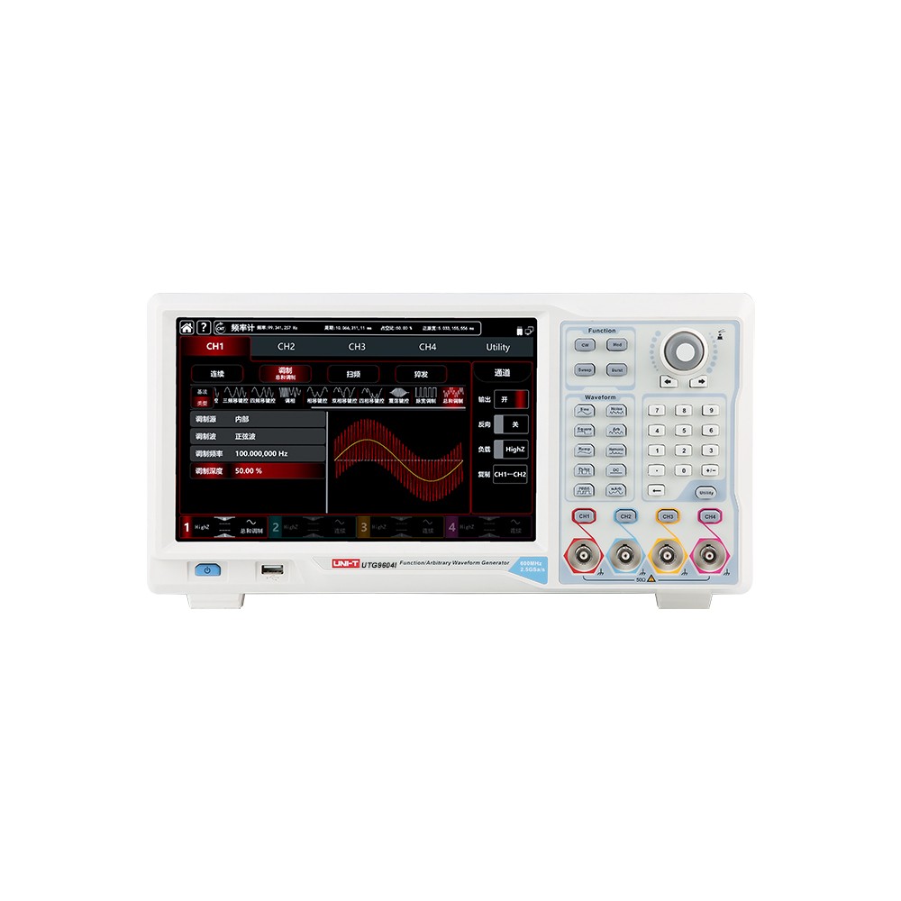 UTG9000I系列函数/任意波形发生器,使用DDS直接数字频率合成技术,可生成高精度、稳定、纯净、低失真的信号,还能提供高频率且具有快速上升沿和下降沿的方波。是一款高性能、多功能的四通道函数/任意波形发生器。便捷的触控操作界面、优越的技术指标及人性化的图形显示风格,可帮助您更快的完成工作任务,提高工作效率,是满足您目前及未来测试需求的多用途设备。