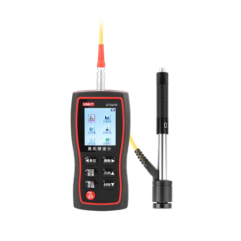 UT347D里氏硬度计是一种新型的硬度测试仪表,它是以里氏硬度为原理,测出里氏(HL)硬度值经过程序自动转换成布氏,洛氏,维氏,肖氏等硬度值,还可以配置各种测试配件,来满足于各种测试条件和环境,适用于金属材料的快速硬度测试,对大型零部件及不可拆卸部件的现场硬度测试,机床导轨等的硬度检测。