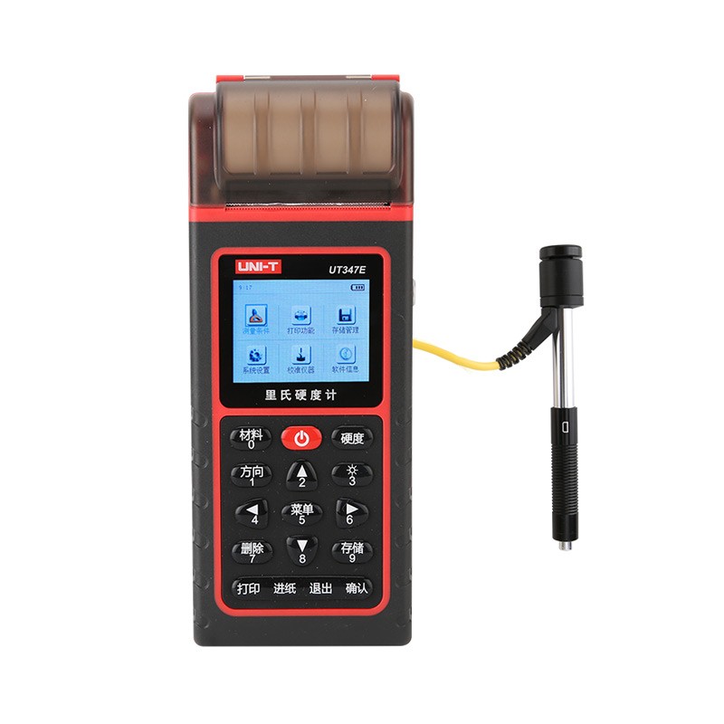 UT347E里氏硬度计是一种新型的硬度测试仪表,它是以里氏硬度为原理,测出里氏(HL)硬度值经过程序自动转换成布氏,洛氏,维氏,肖氏等硬度值,还可以配置各种测试配件,来满足于各种测试条件和环境,适用于金属材料的快速硬度测试,对大型零部件及不可拆卸部件的现场硬度测试,机床导轨等的硬度检测,UT347E还带有打印电脑联机,锂电池充电,打印的功能。