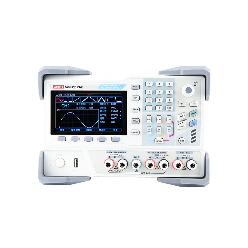 UDP3000S系列可编程线性直流稳压电源具有两路30V/5A输出、一路6V/3A和一路标准USB输出,产品4.3英寸TFT大屏提供丰富的功能界面,使列表/延时器功能、触发器、监测器功能、波形显示功能、系统设置和输出预设功能等便捷易用。