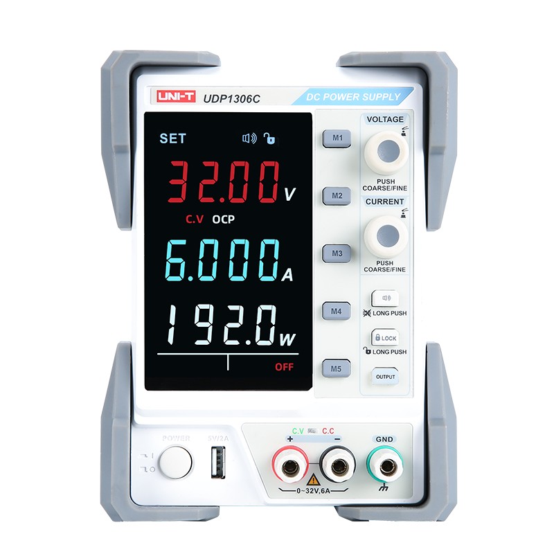 UDP1306C直流稳压电源是一款经济型、拥有两组独立输出:一组32V/6A可调输出,一组5V/2A固定输出,具备CV与CC模式,短路与过压保护功能。