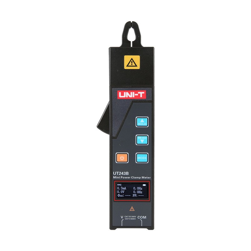 UT243B 电能表现场校验仪又名电能表在线校验仪、电能表校验仪、MiNi钳形功率表,采用单钳设计,MiNi机身,小巧玲珑,其外形美观精致,结构科学合理。使用高性能32位嵌入式微处理器+实时操作系统,CPU最高主频达到120MHz,ADC实现最高采样速率达到1MSPS,有效保证了数据的精度和信息完整性, 仪表能测试380/220V电力系统中的相位、真有效值电压、真有效值电流、漏电流、频率、有功功率、无功功率、视在功率、有功电能、无功电能、视在电能、功率因数、1~50次谐波、谐波比等,并实时显示电流电压波形,能判断感性容性电路,