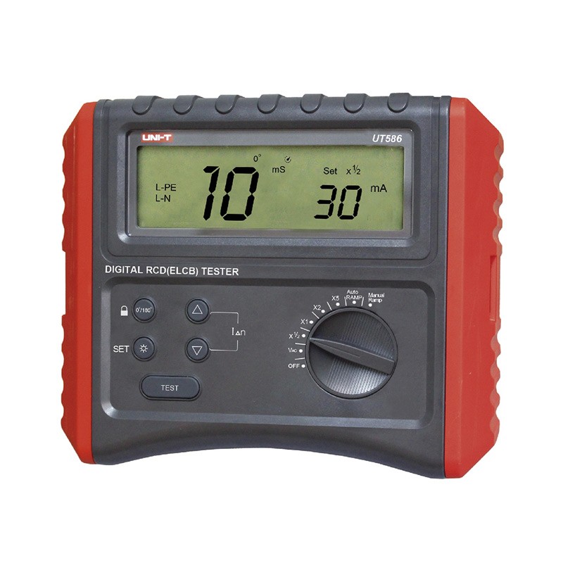 UT586 是一款数字式漏电保护开关(RCD)测试仪,整机以智能微控制芯片为核心,并配以全功能保护电路设计.可用于测试漏电保护开关的动作电流和动作时间,也用于接线检查;并具备相位选择、遥控测试功能,过温自动禁止测量功能,线路电路异常自动禁止测量功能;精度高、性能稳定、操作方便、使用安会可靠。可广泛应用于家庭、学校、电力、制造、冶炼、化工等行业的安全测量,是漏电保护开关生产、安装、检验、维修的理想工具。