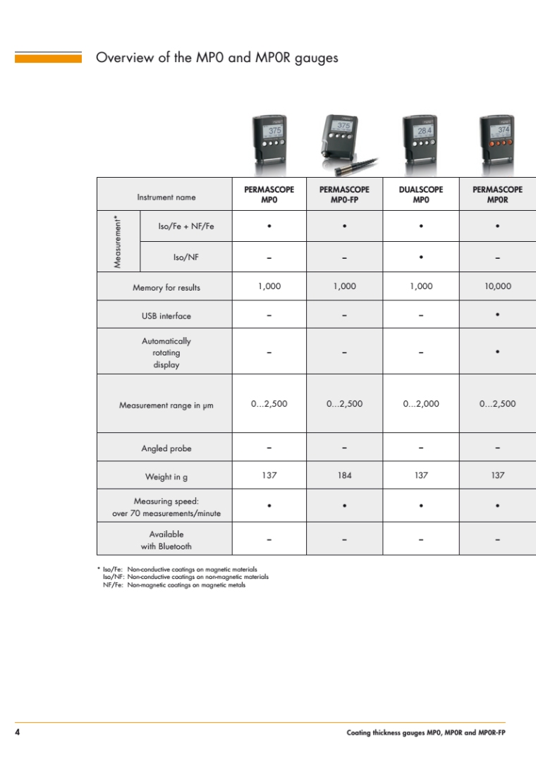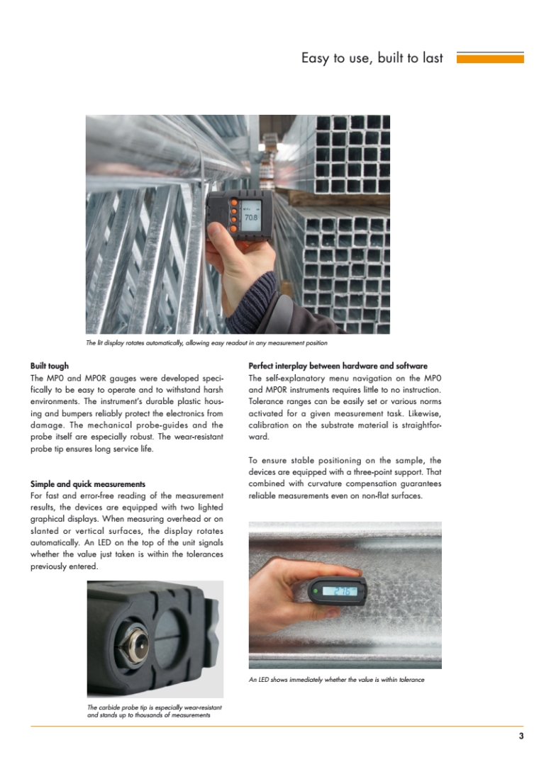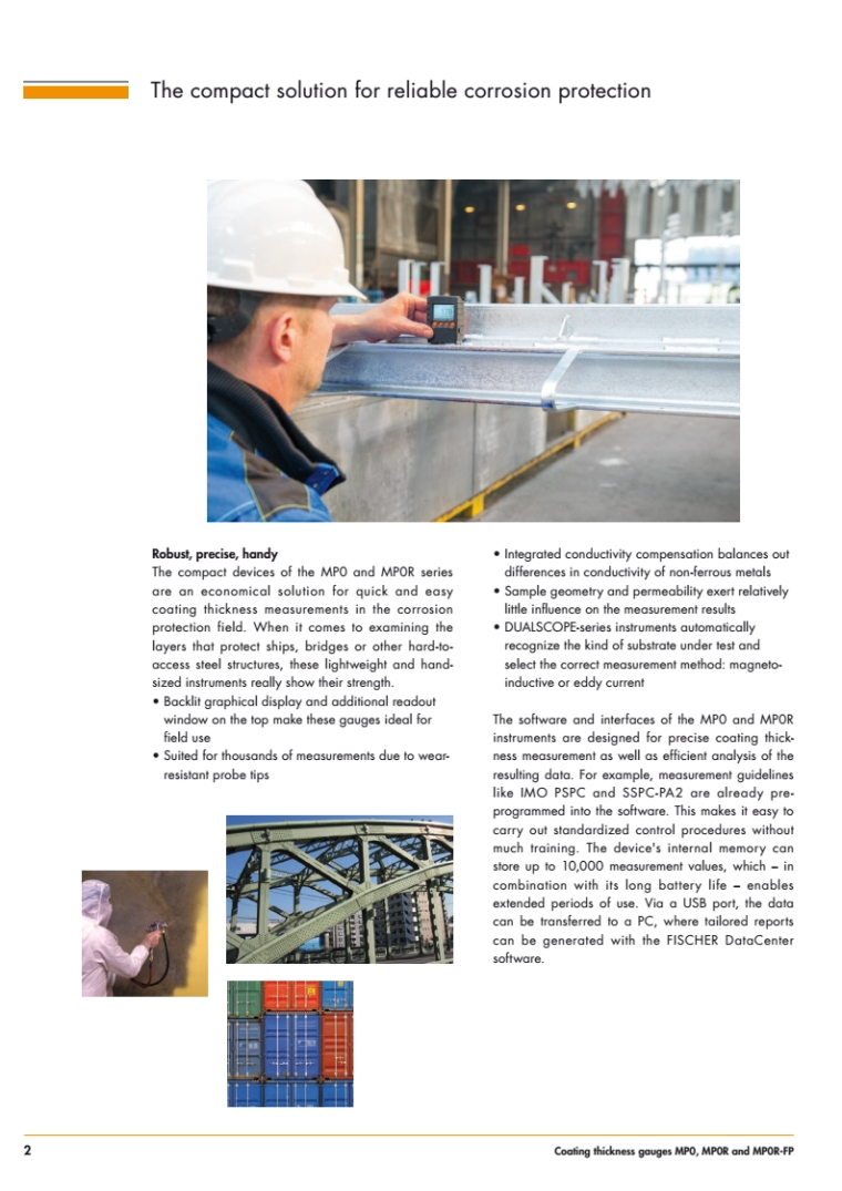 小巧、方便且稳固 – MP0 系列仪器能够简便、快速且无损地测量涂层厚度。配有两个显示屏、一个特别坚固的外壳和耐磨损的探头,它们是可以直接用于现场可靠测量的理想设备。特性: