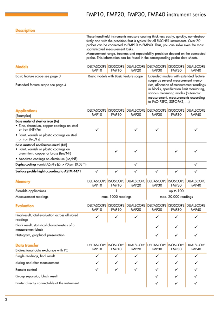 FMP10 系列手持式涂镀层厚度测量设备可提供精确的测量结果,多种测量技术使其具有高度的灵活性。包括采用磁感应测量 (DELTASCOPE®)、电涡流测量 (ISOSCOPE®) 或同时结合两种方法 (DUALSCOPE®) 的多种型号。通过为这些仪器配备不同的探头,您可以为几乎所有测量任务快速创建相应的解决方案。特性: