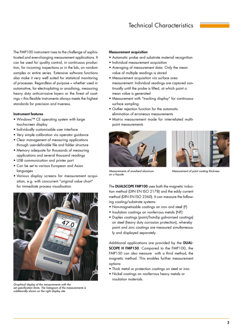 凭借 DUALSCOPE® FMP100 ,FISCHEER可提供高性能手持式测量仪器,用于专业涂镀层厚度测量中各种要求严苛的任务。这些仪器配备触摸屏和 Windows™ CE 操作系统,操作快速且直观。更大的系统内存意味着您可以执行数千个测量任务。具有各种统计与分析功能,可用于处理结果。