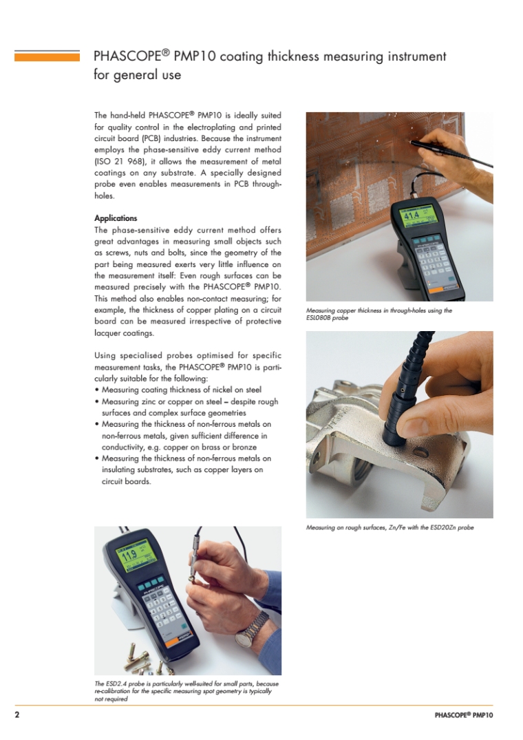 PMP10 采用相位敏感测量技术,适用于测量粗糙底材上的涂镀层厚度或钢上的镀镍层厚度。