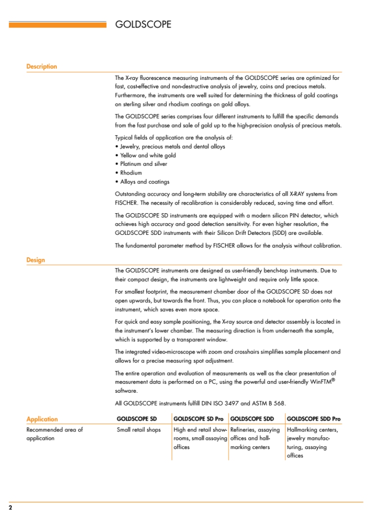 FISCHER通过GOLDSCOPE系列仪器,为无损的黄金和贵金属测试提供定制化解决方案。这些耐用的X射线荧光仪器,其软硬件均为珠宝黄金行业而设计。专注于重要的功能,在控制成本的同时仍只采用广受认可、高质量的组件。特点