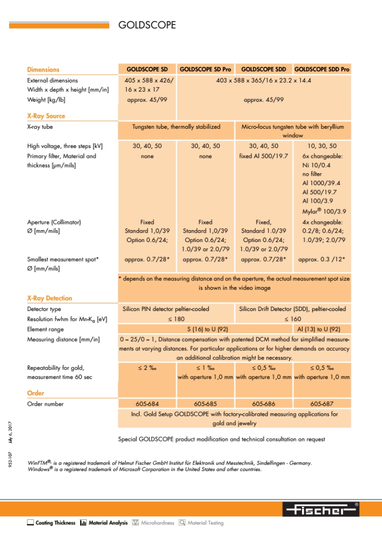 有4个型号适合于所有测量应用:GOLDSCOPE SD, GOLDSCOPE SD Pro, GOLDSCOPE SDD, GOLDSCOPE SDD Pro