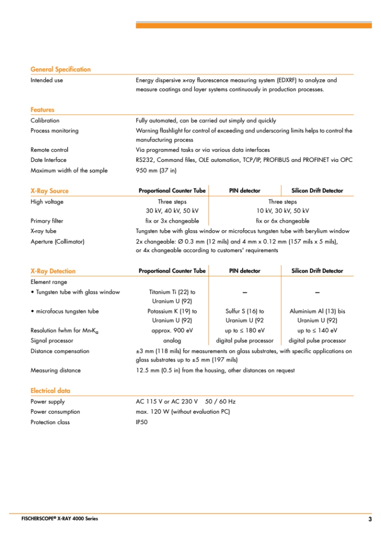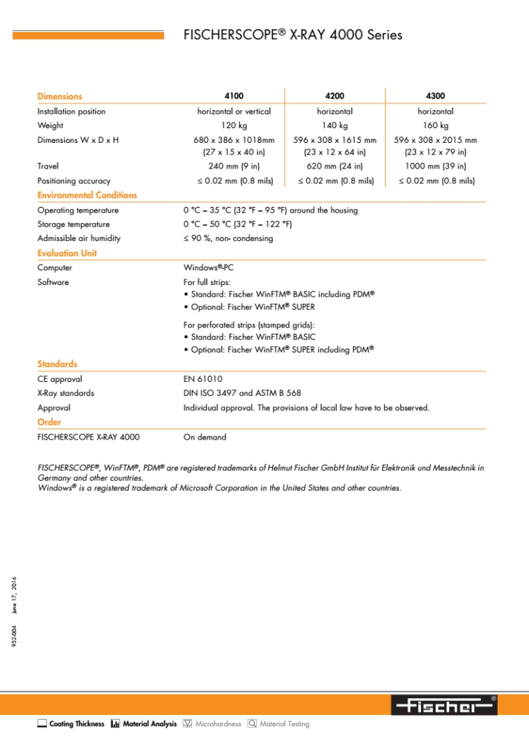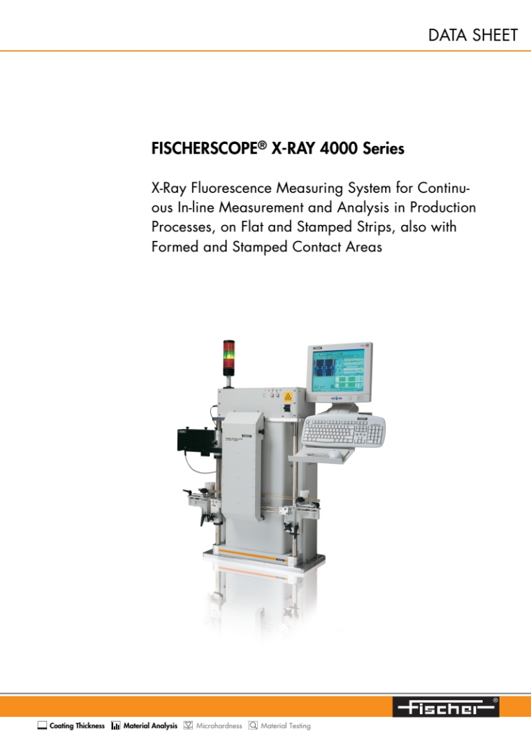 FISCHERSCOPE X-RAY 4000 专为带状材料上的电镀层厚度测量与材料分析而设计。已经有300多套该测量系统安装于不同规模的电镀厂中。由于测量头可快速移动,即可实现对样品的多个位置进行测量。仪器的模块化设计能够根据您的特定要求,选择不同的X 射线源和探测器,以达到佳的测量效果。特性:
