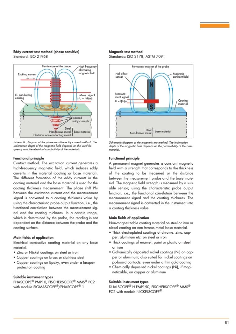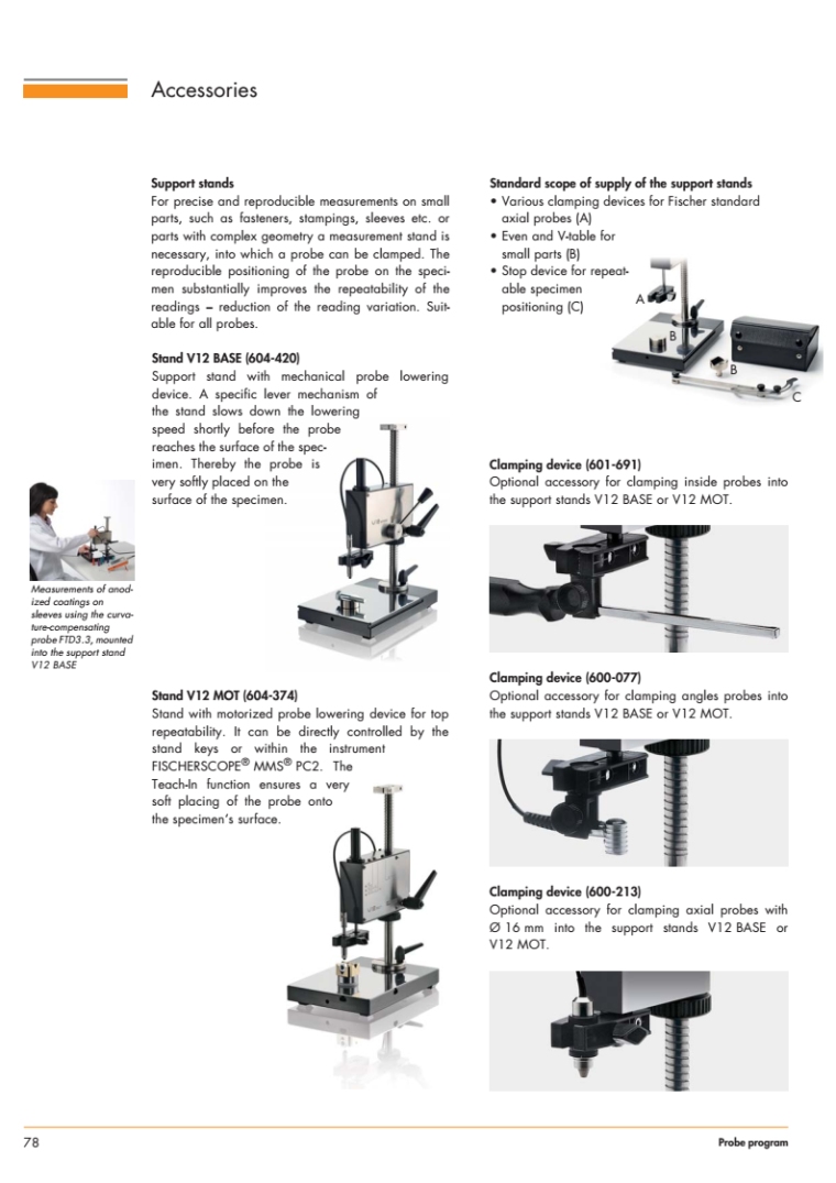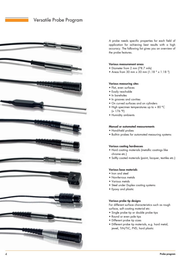 为了获得准确的结果,测量探头必须具有适合各种应用的某些特殊性能。选择合适的探头对测量结果的质量有很大影响,因为它是传输实际测量信号的途径。基于在诸多领域中数十年的经验,FISCHER针对接触式测量技术打造出了丰富的高品质探头产品,适用于涂镀层厚度测量和材料测试。特性