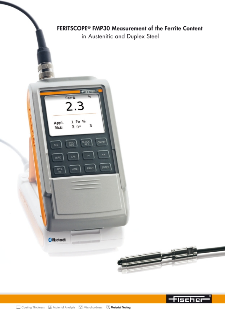 在奥氏体或双相钢必须承受高温、侵蚀性物质以及高压的情况下,铁素体含量至关重要。特别是涉及到化工厂、能源设施及工厂中的现场测量时,FISCHER 手持式设备的优势将非常显著。为 FERITSCOPE FMP30 提供多种探头,通过这些探头,即使在难以触及的区域中也能够可靠地测定铁素体的含量。特性: