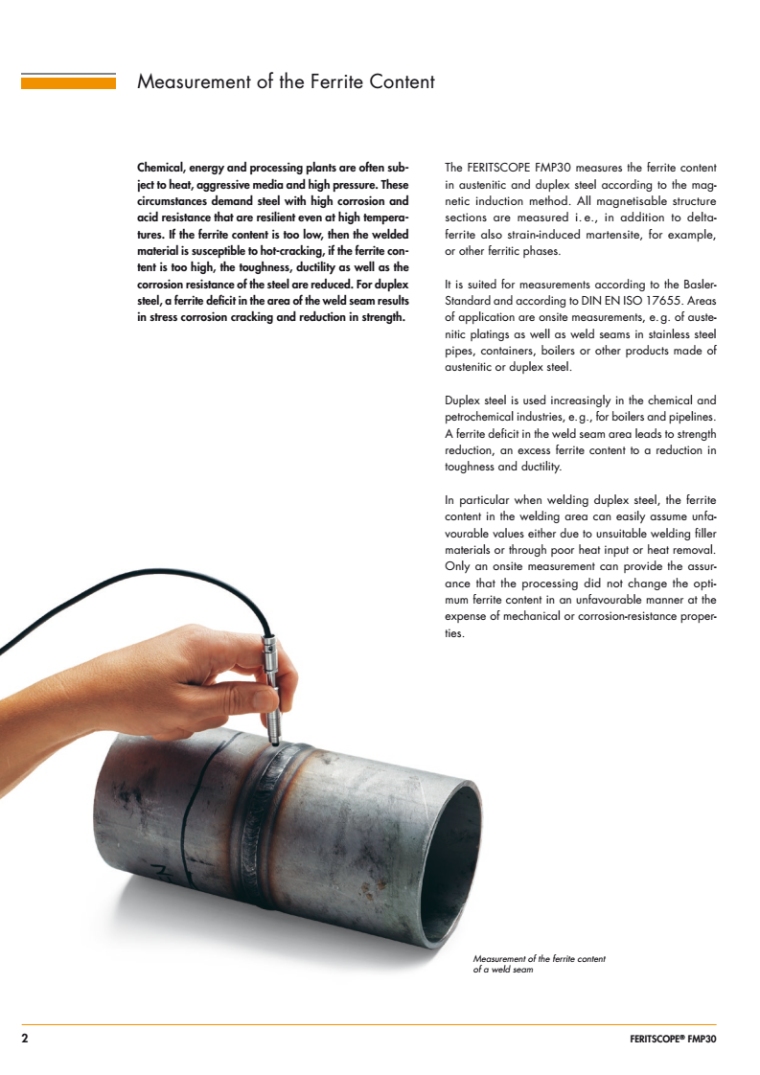 非常适用于管道、锅炉以及容器中的铁素体含量测量
