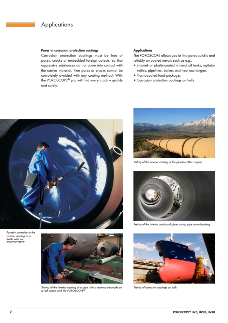 塑料保护涂层可使包装保持无菌,适用于医疗产品或真空包装食品。例如:用于保护箱体、船体或管道免受腐蚀的塑料或搪瓷涂层。POROSCOPE 系列,作为一款坚固耐用的便携式测量设备,非常适合快速、简便地测试非导电保护涂层,甚至可发现极其细微的小孔和裂痕。特性: