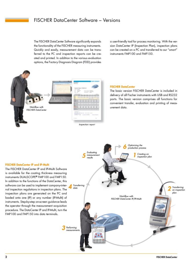 便携式 DUALSCOPE FMP100 与 FMP150 涂层厚度测量仪器可选配 DataCenter IP Inspection Plan 软件:创建特定检查计划,确保在生产中正确执行测量过程