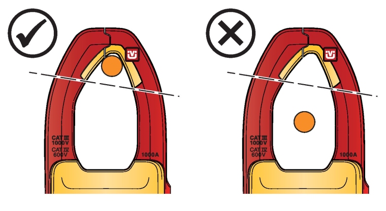 将电线尽可能置于靠近钳口开口的位置(见图)。 ![]() | ||||
