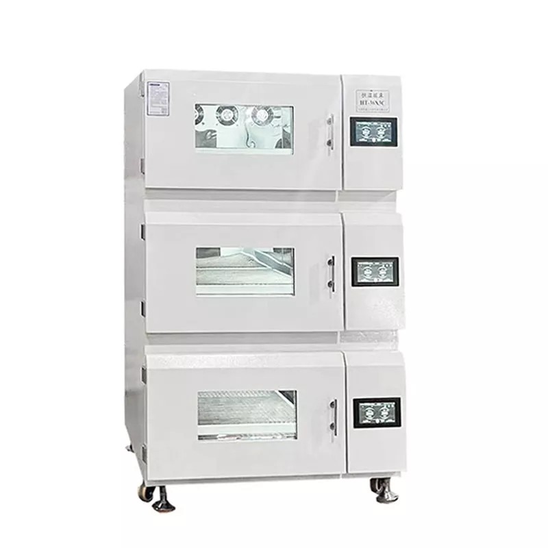 1、三层可单独控温、单独调速,拓展实验室面积利用率。并且每层标配两层载物,可一层振荡另一层静置培养,一机多用。
