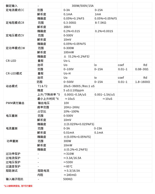 ♦ 提供CR-LED/CC/CV+CC/CR/CW等工作模式