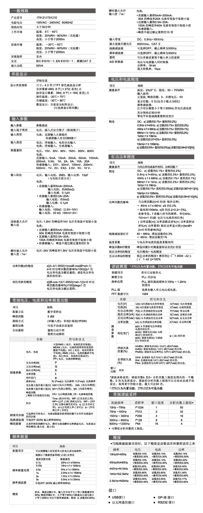 IT9100 系列功率表提供600Vrms和20Arms的大输入,以及100KHZ的测量带宽,可以方便地进行电压、电流、功率、频率、谐波等参数的量测。标配有USB、GPIB、RS232和以太网通信接口,您可以通过这些接口实现对IT9121功率表的远程控制,同时您还可以利用USB外围设备接口,直接将量测参数保存到外部储存介质中。IT9121功率表具有0.1%的电压,电流精度,同时还具有丰富的有功功率积分功能。广泛应用于电机,家用电器,UPS等测试领域。