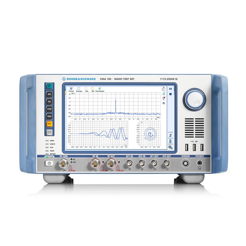 R&S®CMA180 的频率范围介于 100 kHz 至 3 GHz,非常适合测试所有常见的模拟和数字无线电系统。R&S®CMA180 提供最高 150 W 输入电平。R&S®CMA180 内置多种功能,能够灵活地切换音频和射频路径,可以满足各种测试要求。用户可以根据应用情况配置内部发生器、外部音频源、滤波器和测量。对于预定义的接收机、发射机和双工测试,射频和音频路径已预先配置。这可以节省时间,避免执行标准测试用例时出现配置错误。