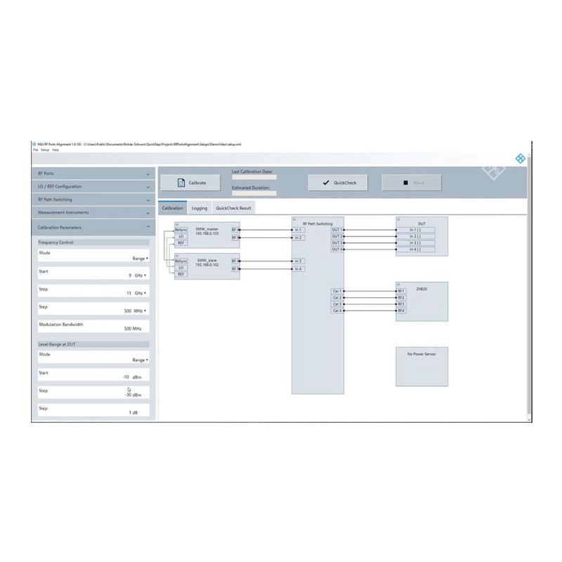 罗德与施瓦茨将 R&S®RF Ports Alignment 射频端口校正软件和 R&S®SMW-K545 选件相结合,提供定制化标准解决方案,专用于为 SMW 多通道装置校准幅度、时间和相位。射频端口校正软件通过连接的 R&S®ZNA 或 R&S®ZNB 等矢量网络分析仪自动为多通道装置收集校正数据。