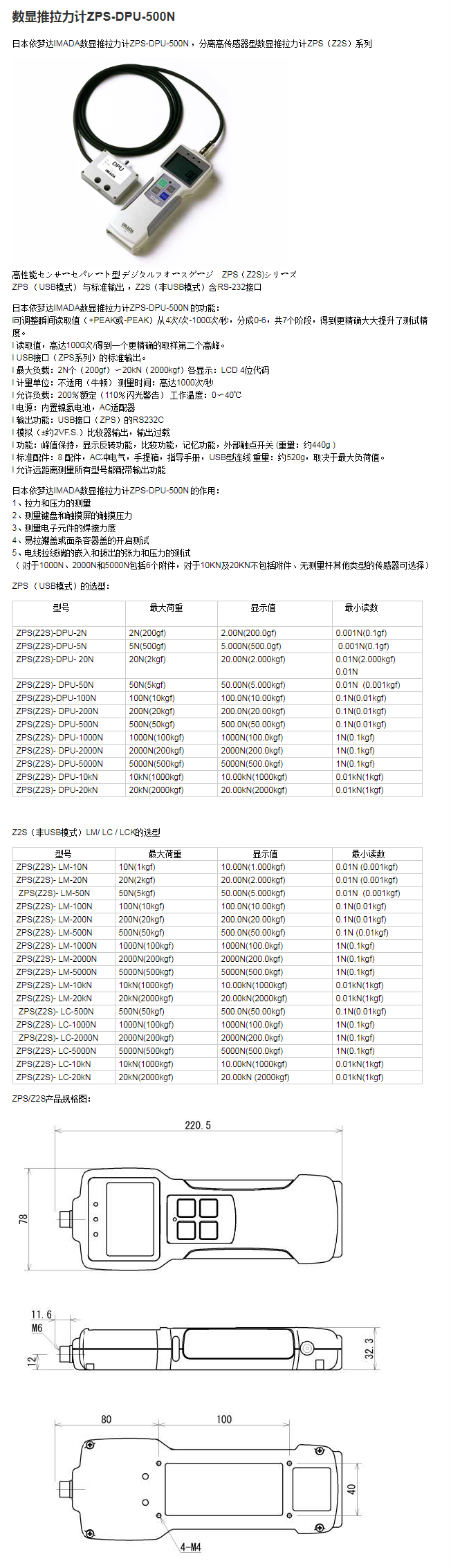 数显推拉力计ZPS-DPU-500N