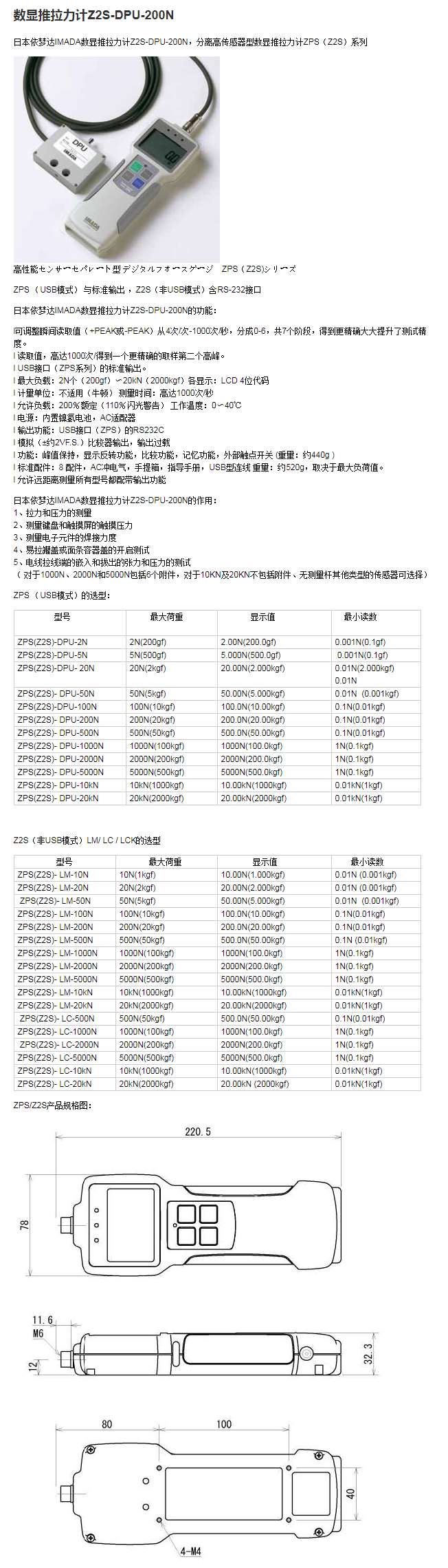 数显推拉力计Z2S-DPU-200N