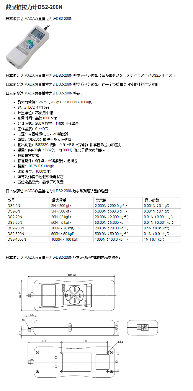 数显推拉力计DS2-200N/DST-200N