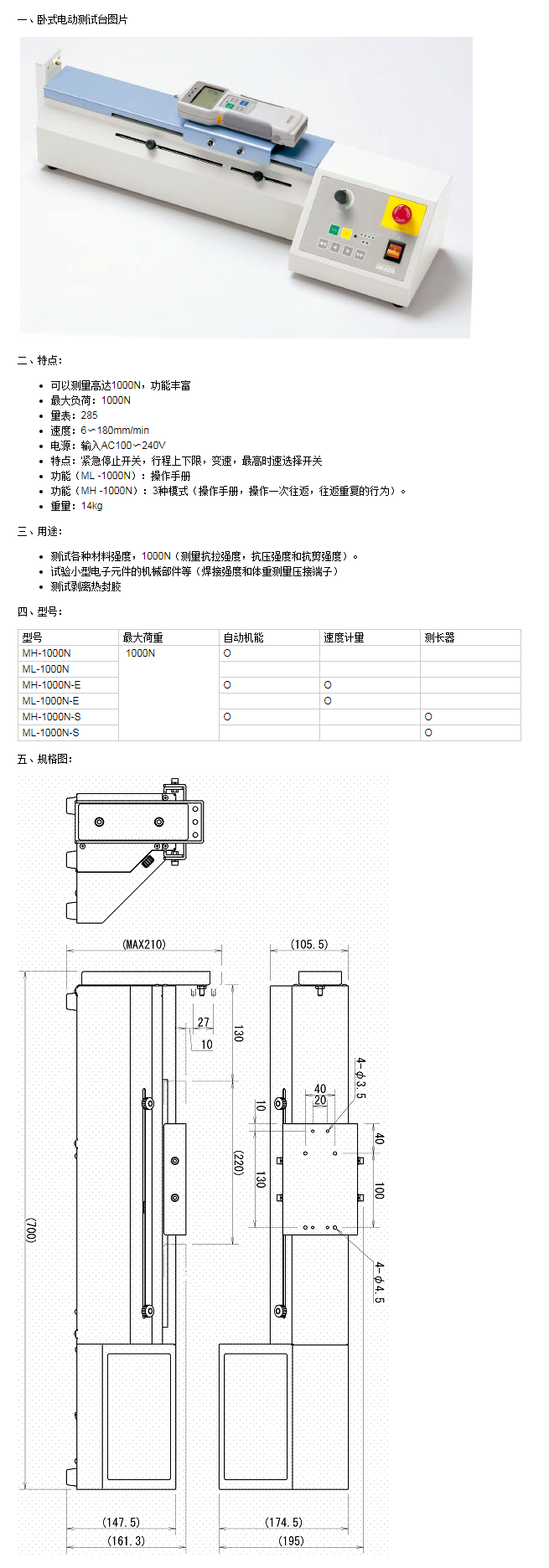 电动测试台ML-1000N-S