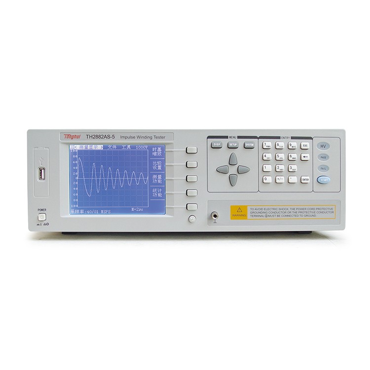 线圈类产品(如变压器、电机等)由于绕线材料、磁性材料、骨架、加工工艺等因素的影响会产生线圈层间、匝间及引脚间等绝缘性能的降低。TH2882A系列脉冲式线圈测试仪是采用高速取样技术研制的新一代线圈类产品绝缘性能的测试仪器,可为大多数线圈类产品提供测试解决方案。TH2882A将标准线圈的采样波形存储于仪器中,测试时将被测波形与标准波形比较,根据设定的判据(面积、面积差、相位差、电晕等)以判定被测线圈的优劣。TH2882AS主要用于测试具有三组线圈之各种三相三线制或三相四线制电机产品,测试波形可与仪器内部标准波形比较,也可不需标准波形而在不同线圈间比较其一致性。