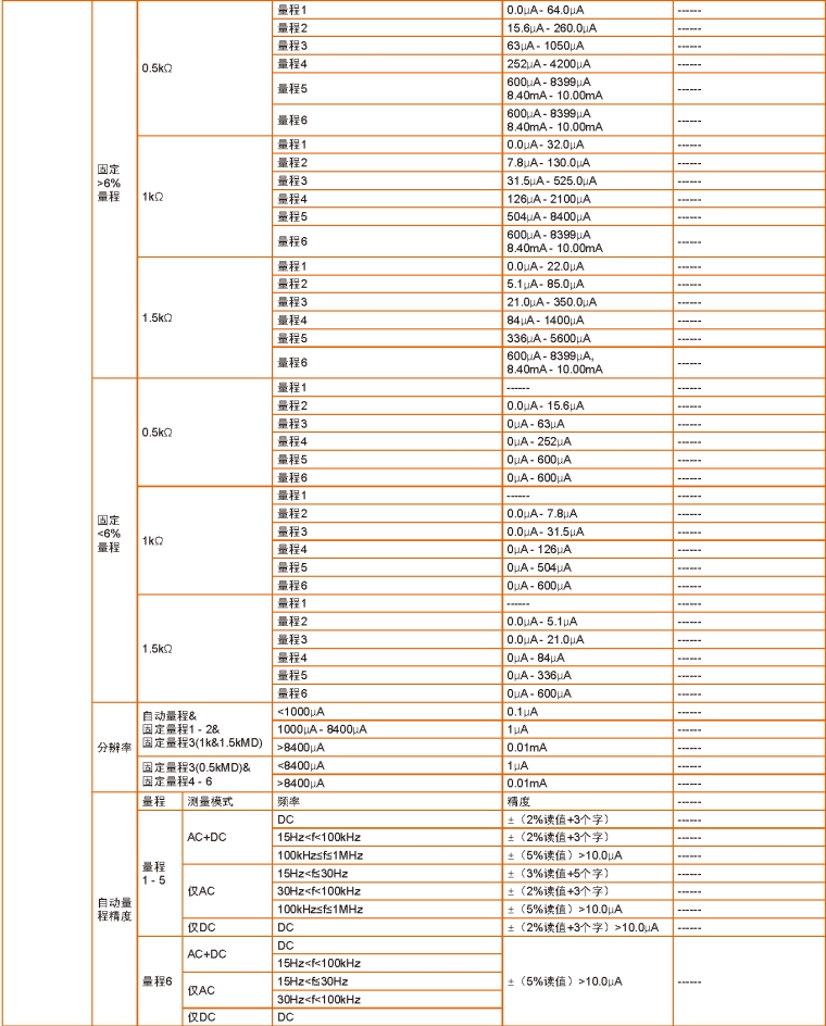 泄漏电流 | 0.0uA-10.00mA | ------ | |||