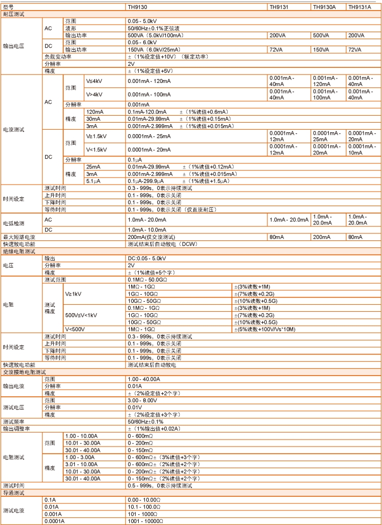 TH9130系列多功能安规综合测试仪集成了七种安规测试功能