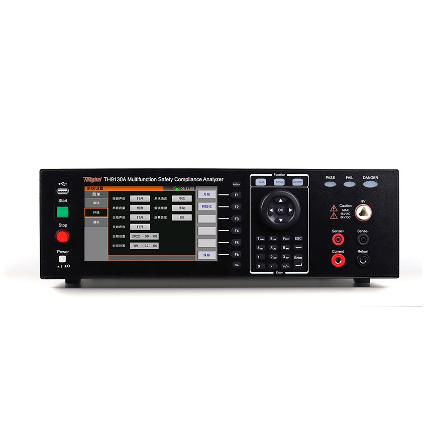 TH9130系列多功能安规综合分析仪是针对电子电器设备的全性能安规测试所设计的仪器。包含交/直流耐压、绝缘电阻、接地电阻、导通测试、电气性能及泄漏电流等多个安规测试功能。