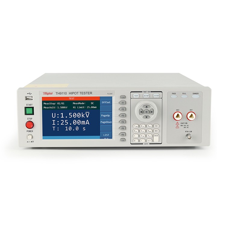 TH9110/TH9110A使用7寸LCD彩色显示屏,并将测试结果用大字符显示,更加清晰直观,方便操作与判断。同时浮地输出设计、触电保护功能等,更加确保了客户即使在不小心接触到高压测试端的时候也不会被电击伤害,保护操作人员的安全,操作时无后顾之忧。