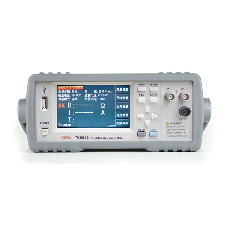 TH2683B绝缘电阻测试仪是带触摸功能和彩色液晶显示的能够快速测量电子元器件(尤其是电容)、介质材料、设备和电线电缆等绝缘性能的测量仪器,它独具绝缘电阻/漏电流双测试功能。TH2683B具有分选输出及外部单脉冲信号输入接口,易于流水线联机操作,配有通信接口可实现计算机对仪器全部功能的异地操作。仪器具有超强的抗干扰能力,测试结果稳定可靠。