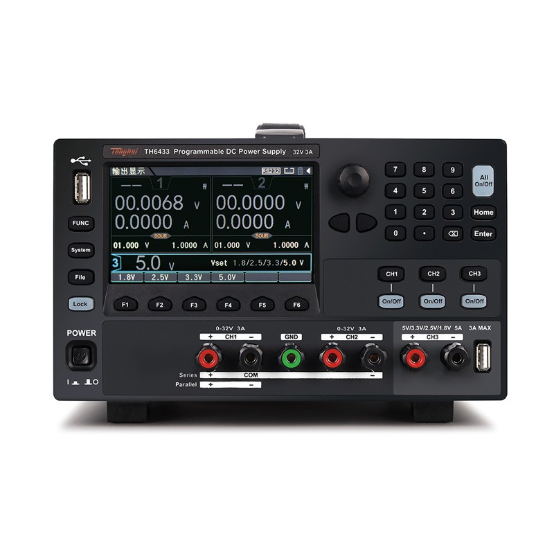 TH6430系列多通道可编程线性源载一体电源具有极快的电压上升速度,并具有超高的精度和分辨率,支持面板编程;直流电子负载具有高精度及多种测试功能,性能优越。